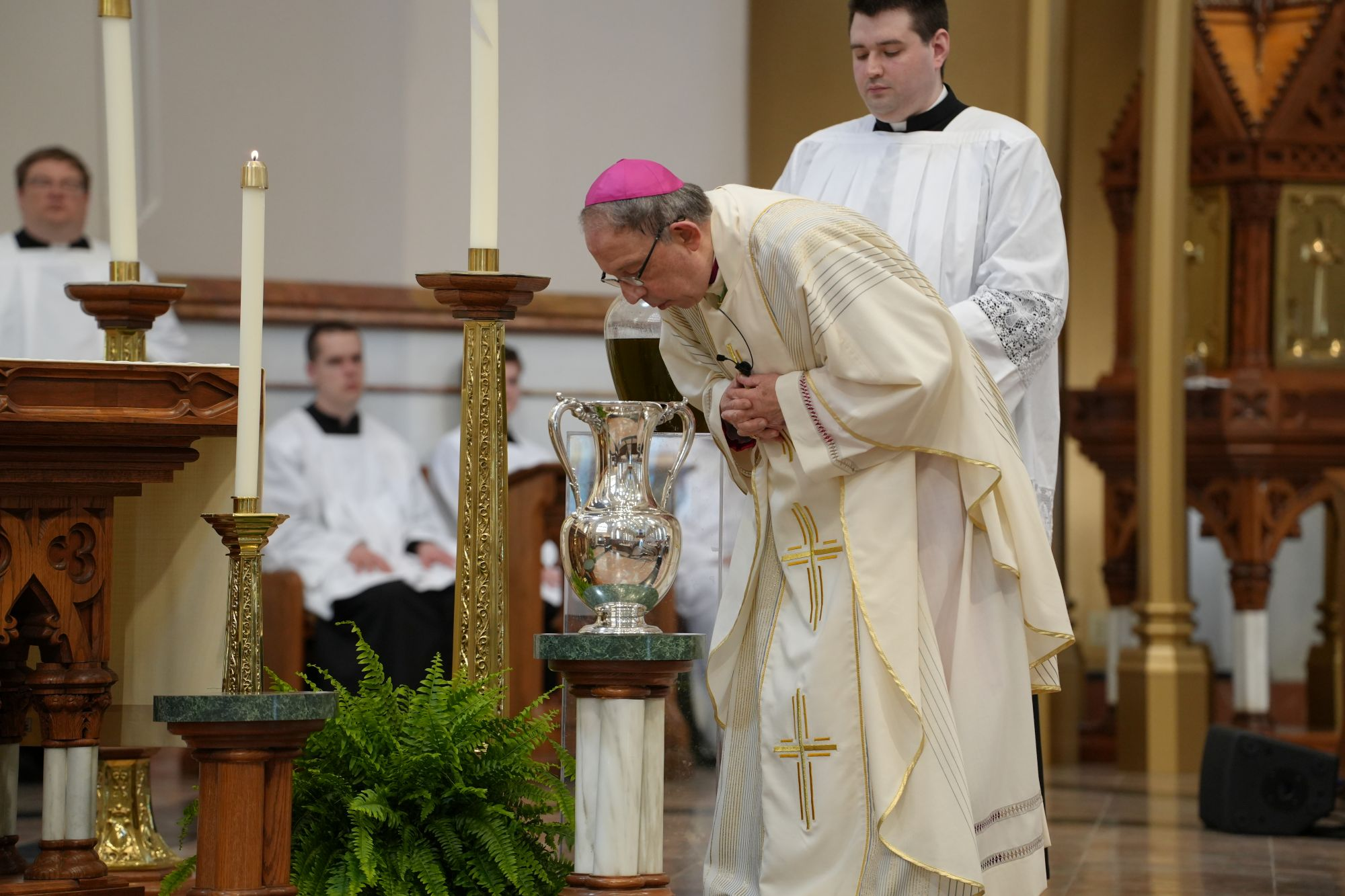 Long before the first hymn echoes through Saint Peter Cathedral, the work of the Chrism Mass is already underway. For the Office for Divine Worship, this sacred liturgy is not simply a date on the diocesan calendar — it is one of the most significant and logistically complex celebrations in the life of the church in northwestern Pennsylvania.