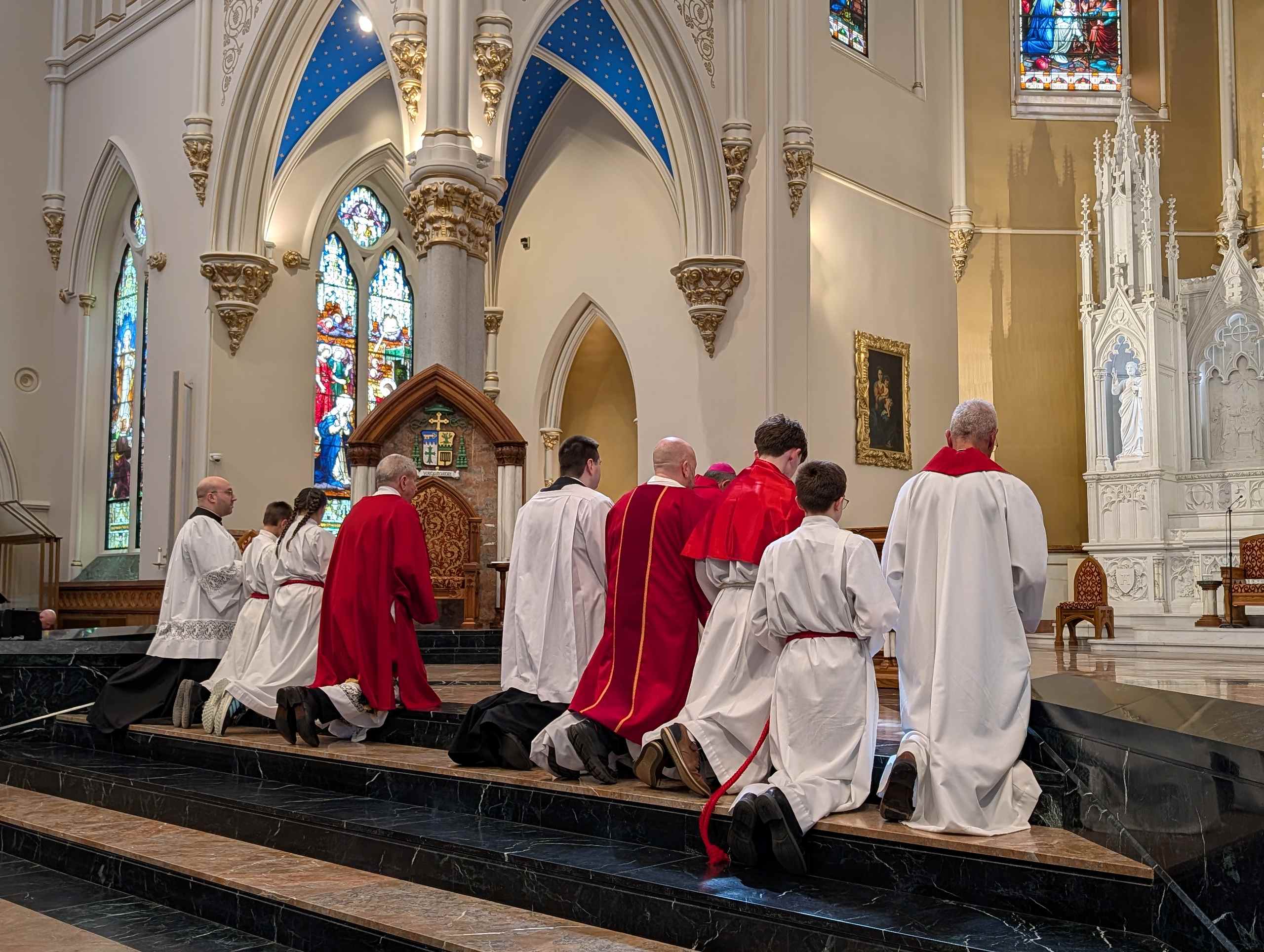 The mood was different from any other day in the Church year. Conversations faded quickly. People entered, found their place and waited. When Bishop Lawrence T. Persico and the ministers processed in, there was no greeting. Reaching the sanctuary, Bishop Persico knelt in silence before the altar.