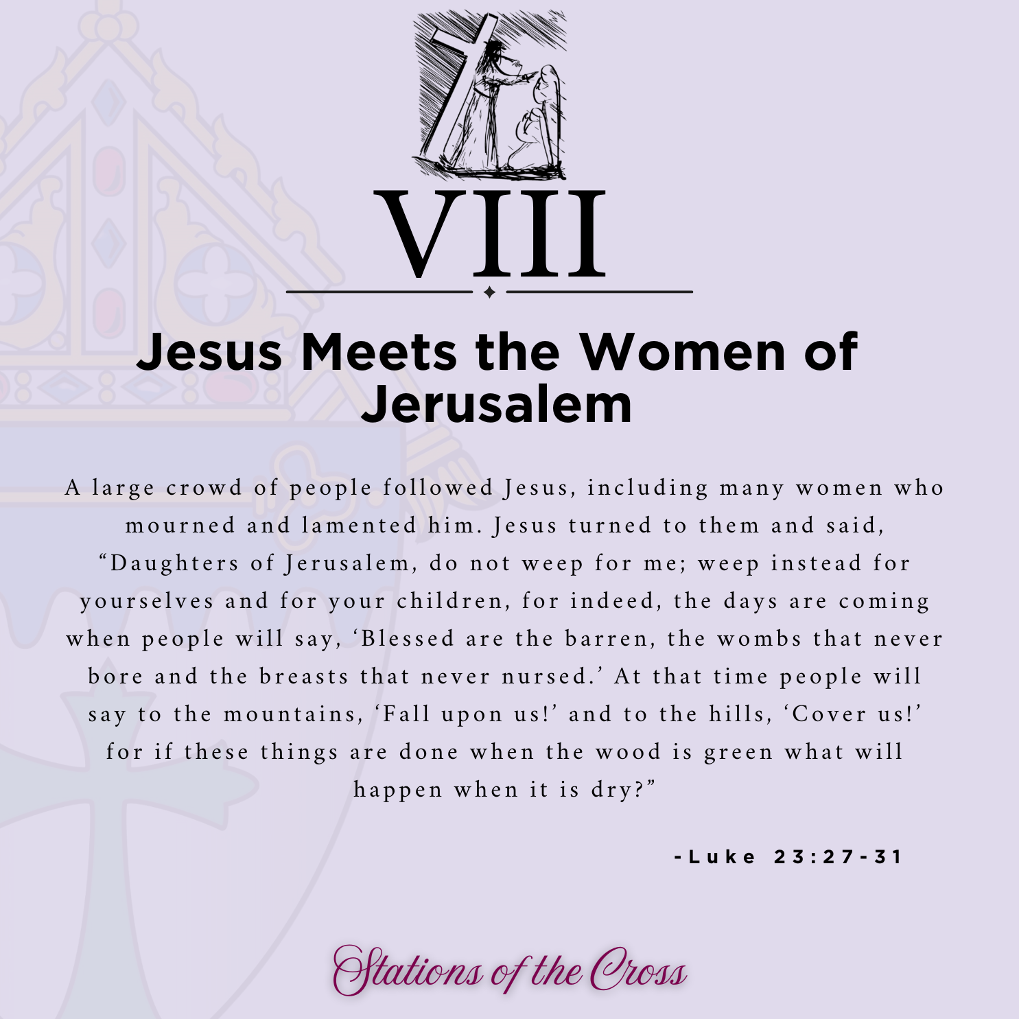 Caption: Jesus pauses to speak to the women who weep for Him. Even in His suffering, He turns His heart toward others.