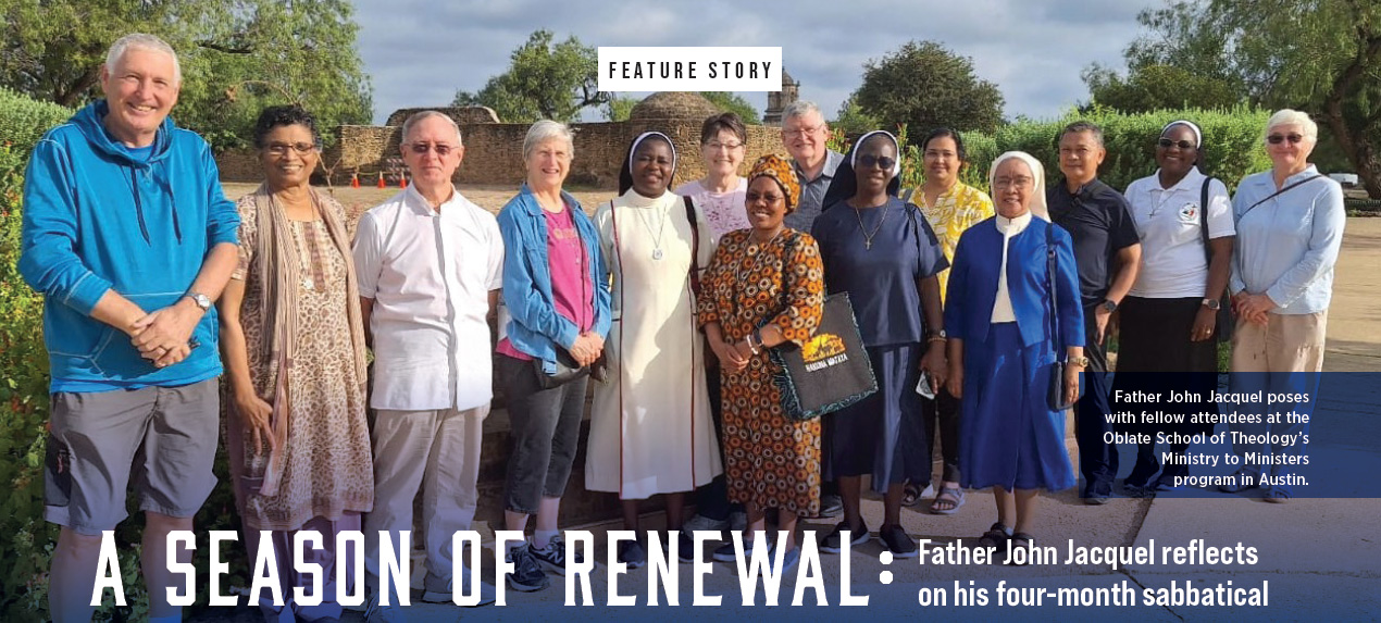 He found the Ministry to Ministers program at San Antonio’s Oblate School of Theology, a sabbatical model refined over more than 40 years. The program brings together priests and religious from around the world for a season of prayer, study, community and restoration. Fourteen participants joined Father Jacquel. Only two were born in the United States. He was the only diocesan priest.