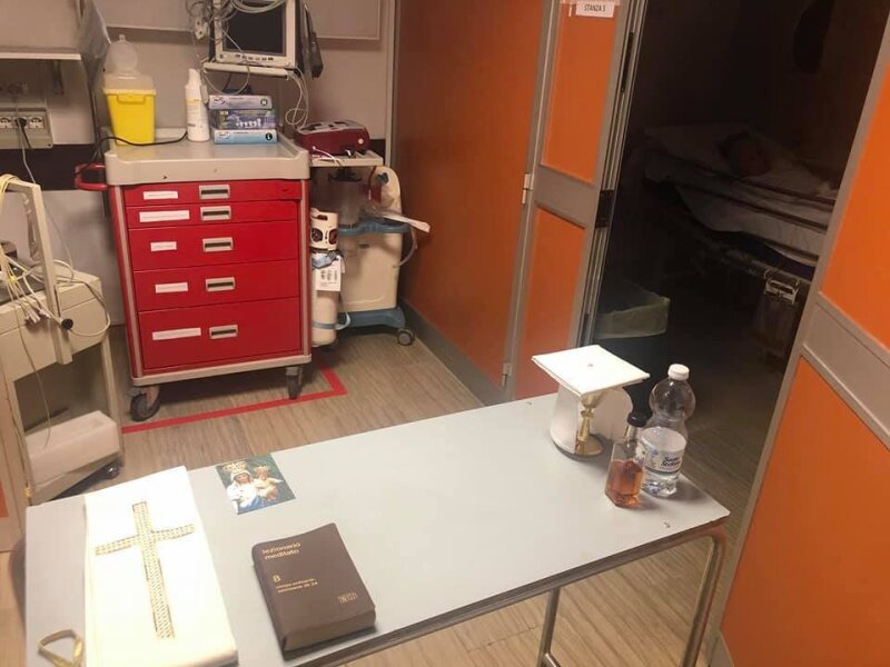 with COVID-19 at the Umberto I hospital in Rome. Father Valerio.